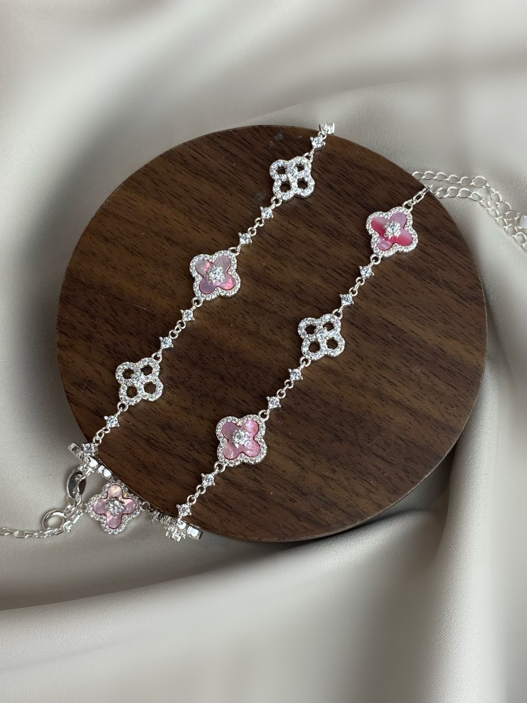 Lắc tay cỏ hồng đính đá – bạc 925 cao cấp