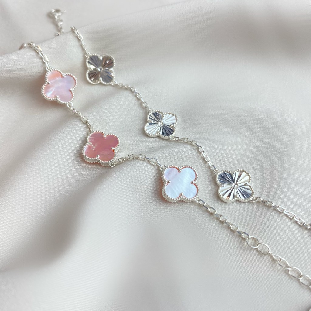 Lắc tay cỏ xà cừ hồng và lắc cỏ trắng – bạc 925 cao cấp