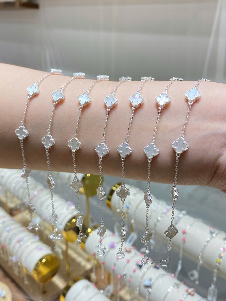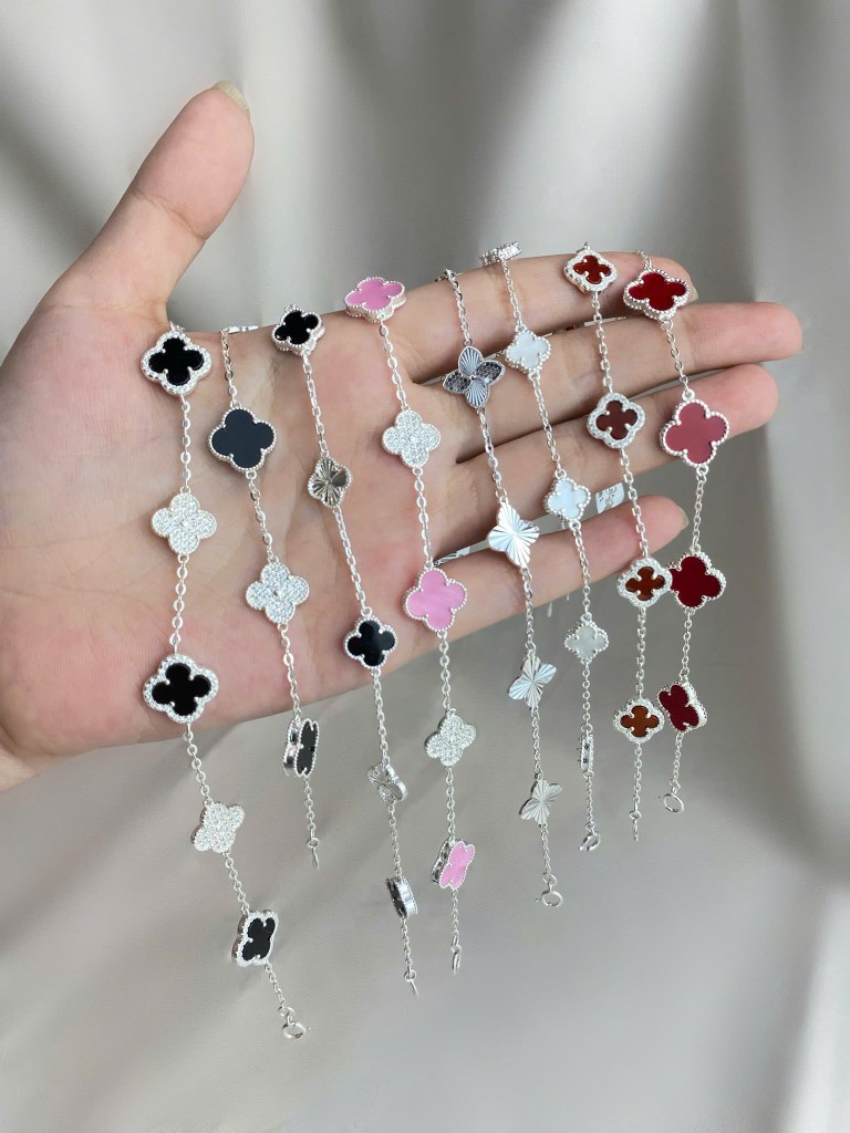 Bảng lắc cỏ bạc 925 cao cấp full màu