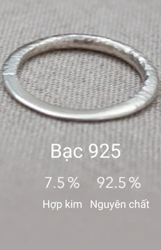 🔹 Bạc 925 có 92.5% bạc nguyên chất và 7.5% hợp kim khác thường là đồng giúp tăng độ cứng và độ bền